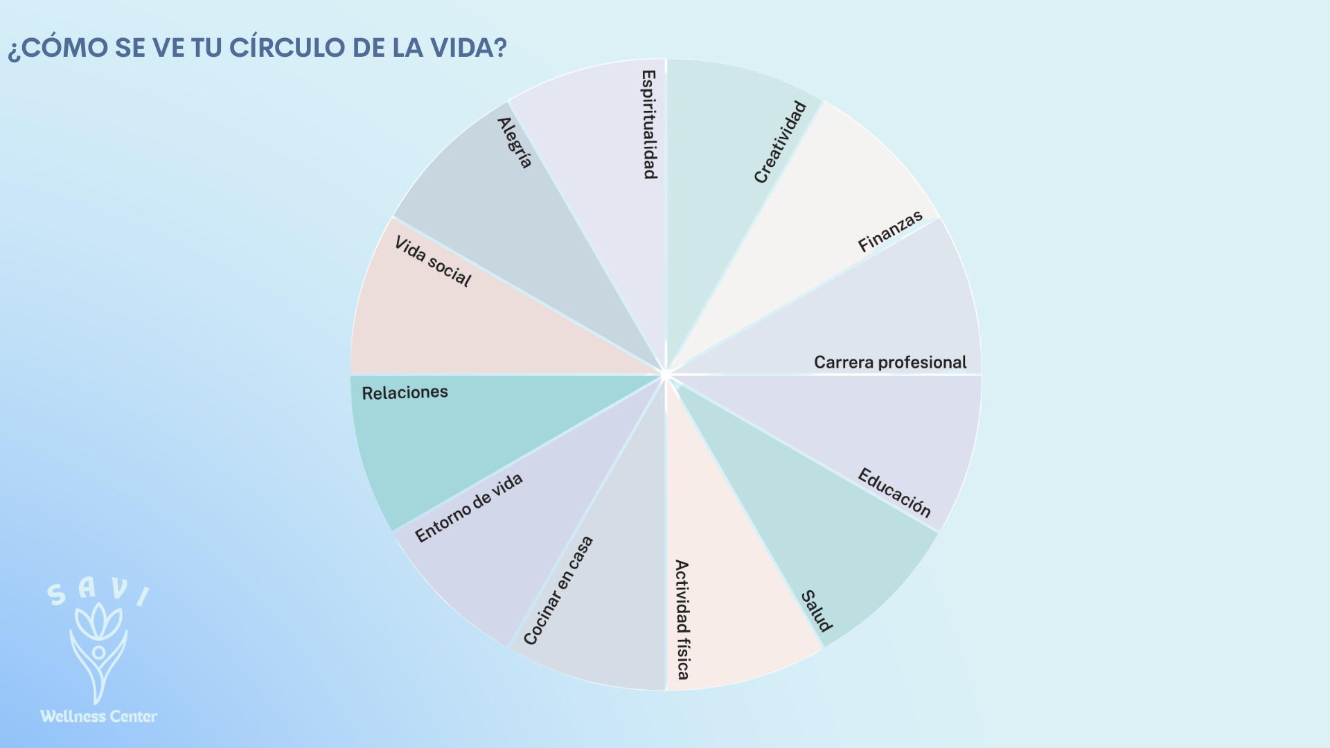 El Círculo de la Vida es una herramienta poderosa que te ayuda a visualizar el equilibrio (o desequilibrio) entre las distintas áreas que conforman tu bienestar: salud, relaciones, carrera, finanzas, creatividad, espiritualidad y más.